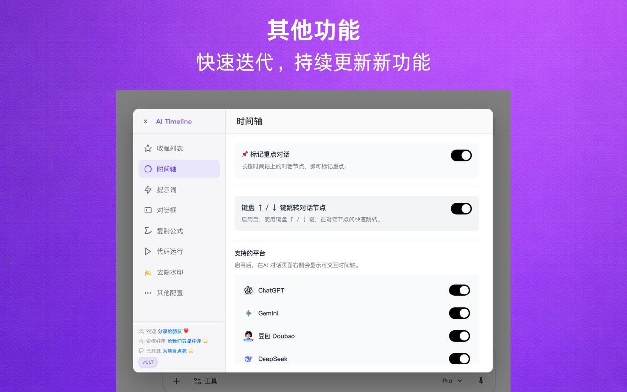 AI Timeline的独特优势在于其专注于AI领域的深度优化,提供针对人工智能工作场景的定制化功能,界面简洁直观,学习成本低,同时支持跨平台使用,让用户随时随地都能高效管理自己的AI工作和学习内容。